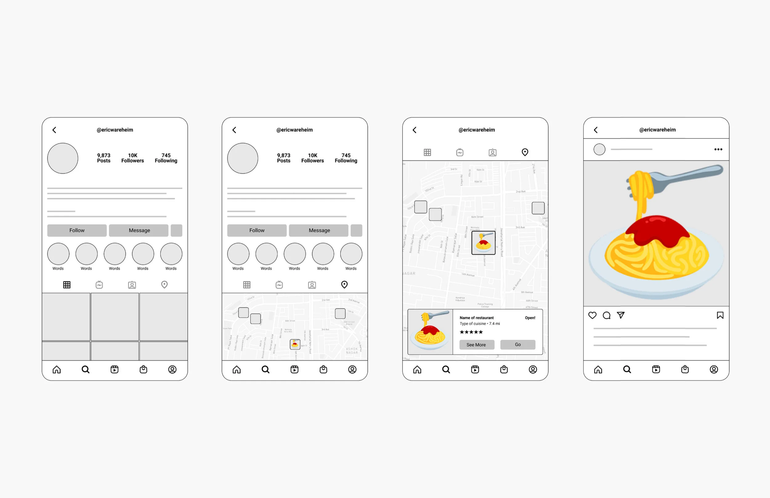 Instagram has been around since 2010 and it has a very established framework that users already know. I wanted to make sure this new feature fit into that framework naturally without causing any major redesigns to the platform as a whole. I chose the placement of this feature based on the current design, integrating it in a spot where users already know to click to view someone’s alternate content.Existing Behaviors: