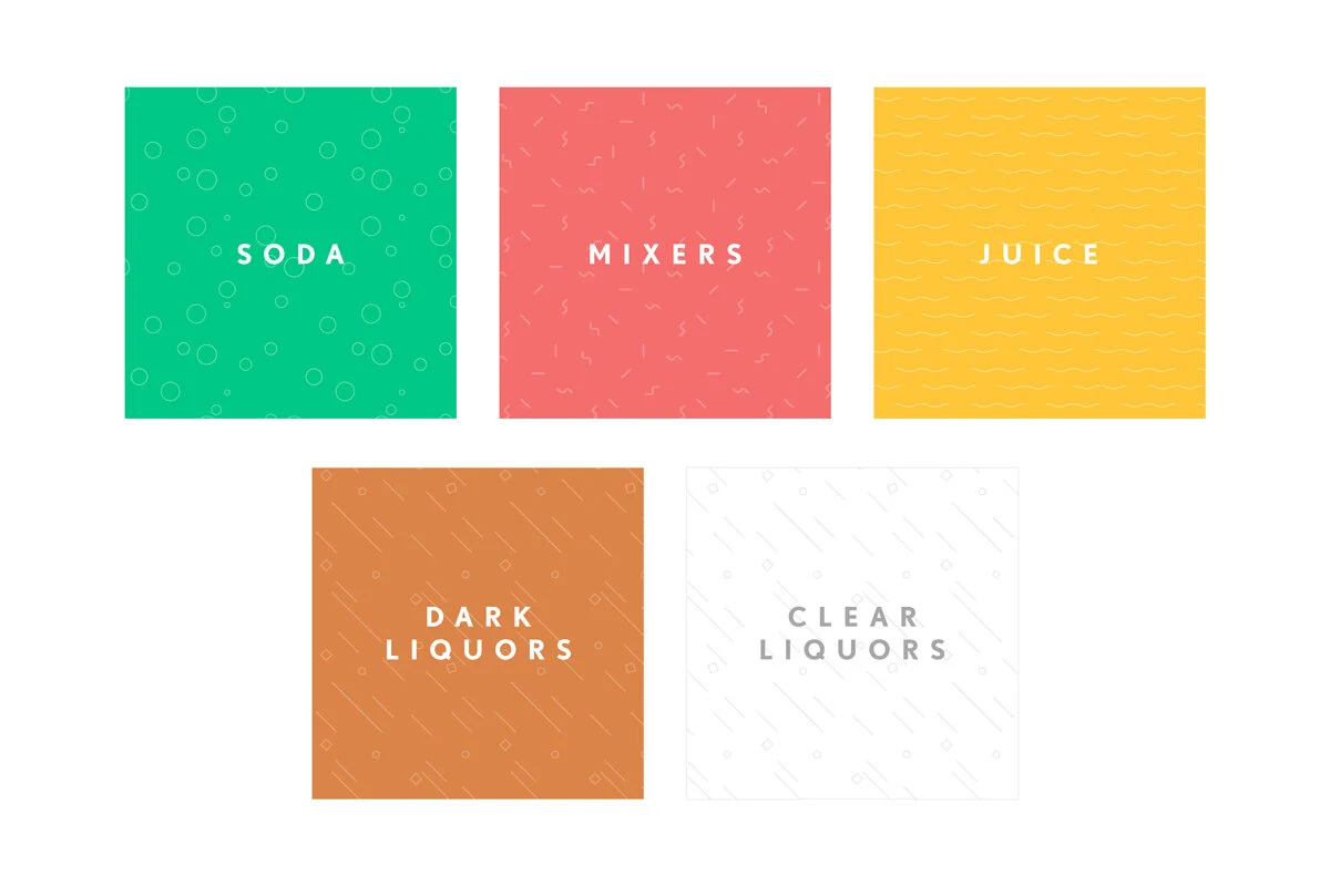 Some cocktail recipes ask for splashes and dashes, so we came up with a pill shaped system to show users that the amount they needed to add was much less than the rest of the ingredients. The “splash” pill shape was a bit larger than the “dash”. They were incorporated into the ingredients based on the order they should be added.