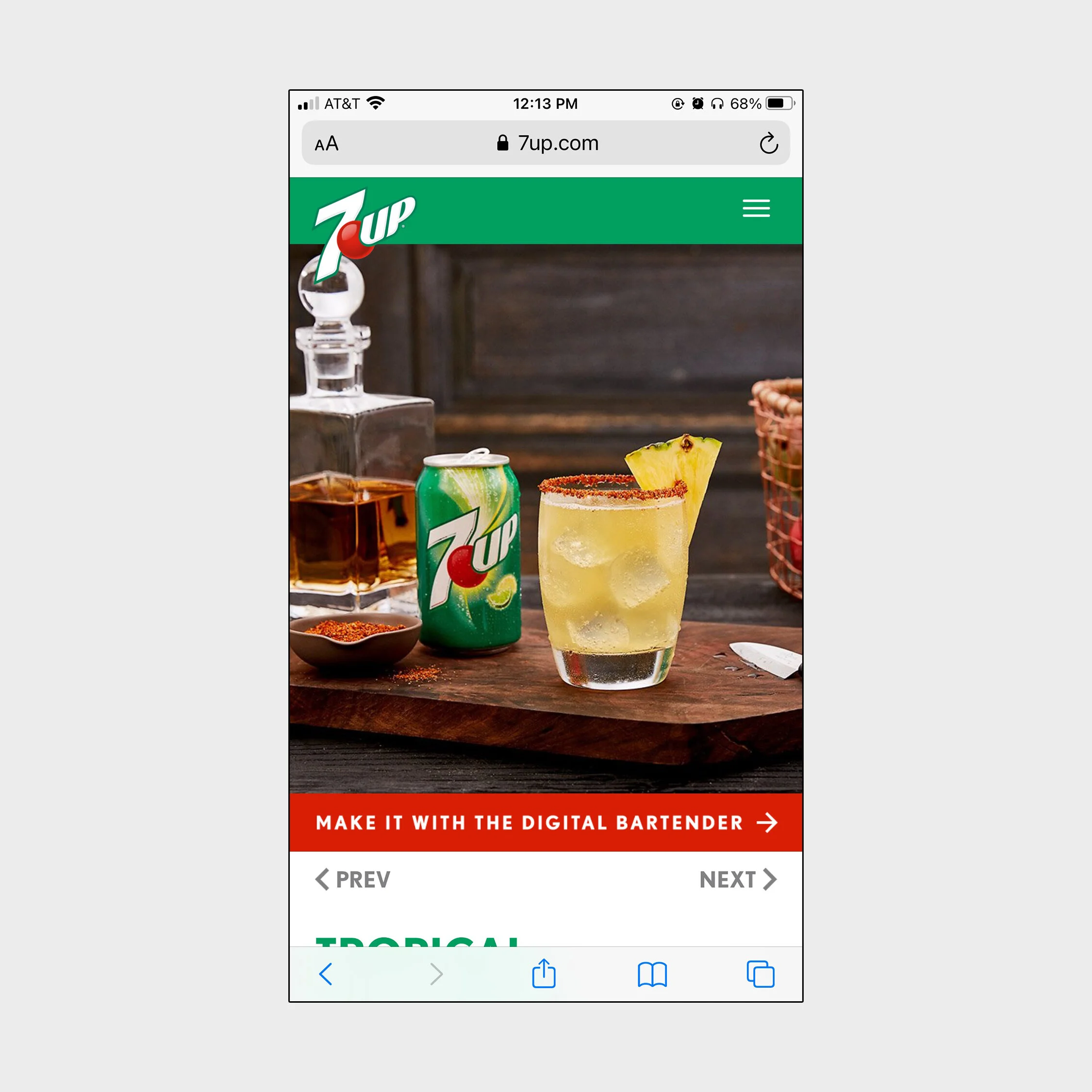 Incorporating the Digital Bartender into the 7UP website. On the applicable recipe pages, we included a callout that indicated when a recipe could be made using our new tool.